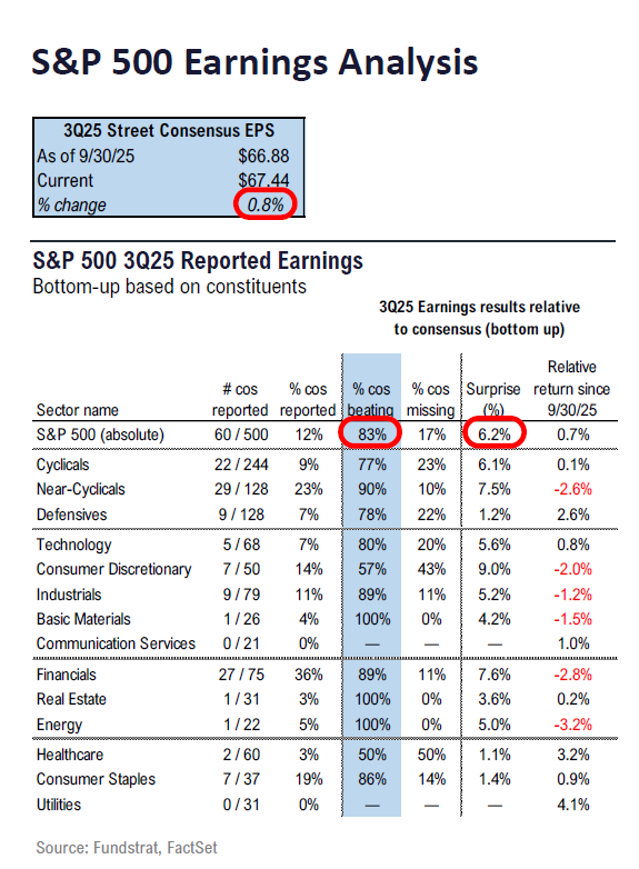 Fundstrat 3Q25 Daily Earnings (EPS) Update – 10/21/2025