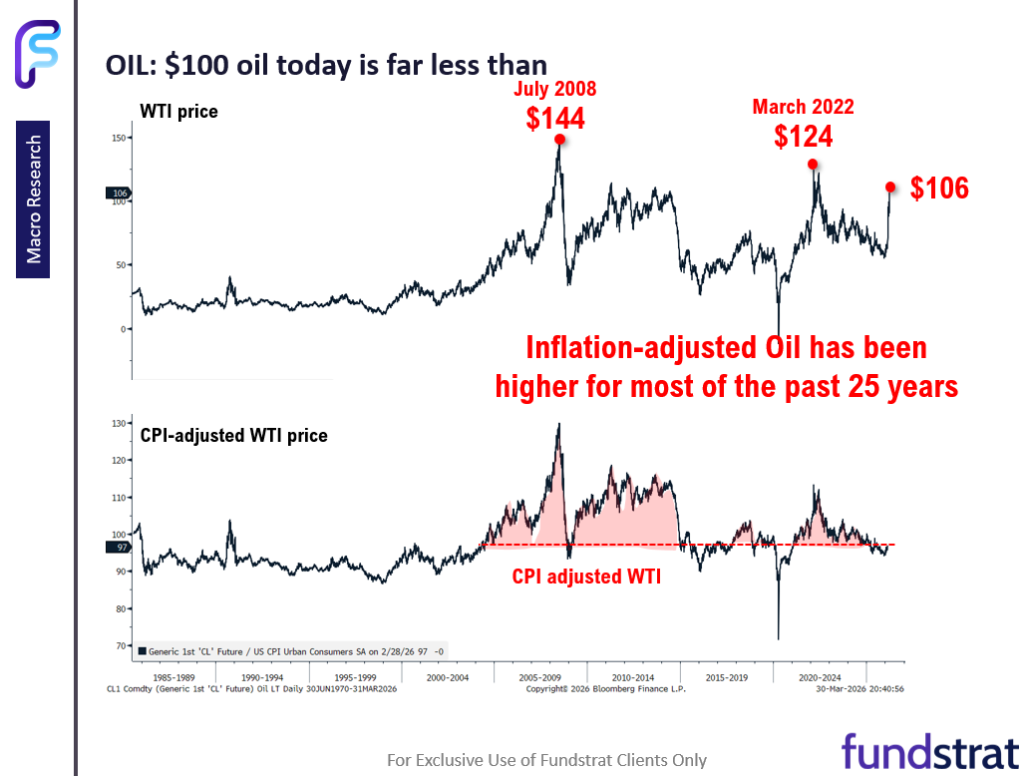 – $100 WTI, inflation-adjusted, is lower than the average price of oil over the past 25 years