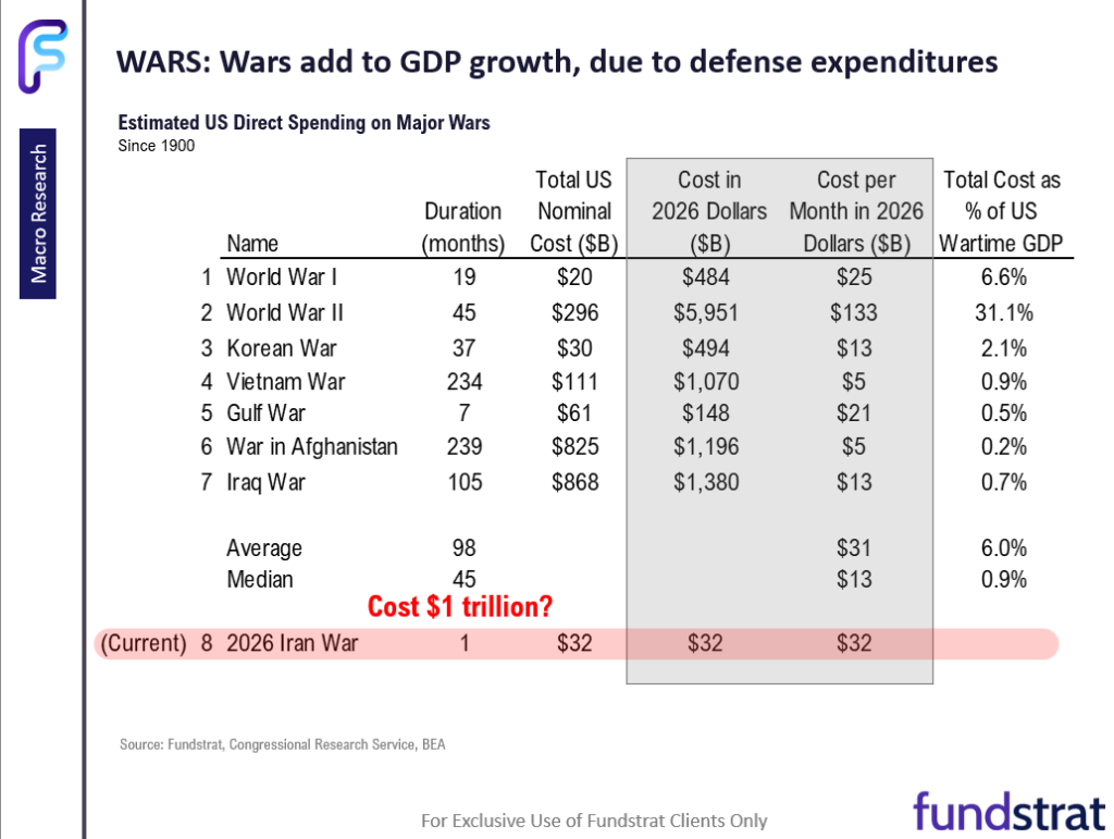 – US war spending is stimulating the economy and adding as much as $20-$30 billion to GDP per month, offsetting higher oil