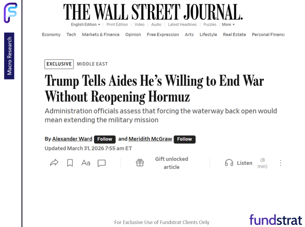 Equity markets gained on Tuesday March 31, as signs emerged of the end of this Iran War conflict, confirmed by statements from both sides — Trump and Iran. The positive reaction by markets is a reminder of the drastically cautious positioning of markets.