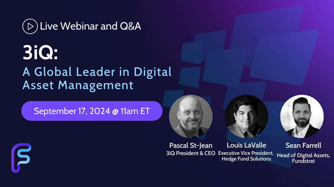 - -3iQ is a comprehensive digital asset management firm with solutions spanning exchange-traded products, investment advisory services, the industry’s first buy-side hedge fund managed account platform (QMAP), and its proprietary Digital Access Portfolio.