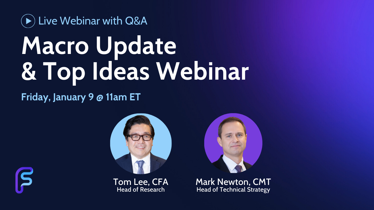 Join us on Friday, January 9 at 11am ET, for a live webinar and interactive Q&A with Fundstrat’s Head of Research, Tom Lee, and Head of Technical Strategy, Mark Newton. The session will feature a macro update, followed by this month’s Top Ideas, where Tom and Mark deliver a focused deep dive into the opportunities they find most compelling in today’s market environment. Can’t attend live? A full replay will be made available to clients shortly after the event.