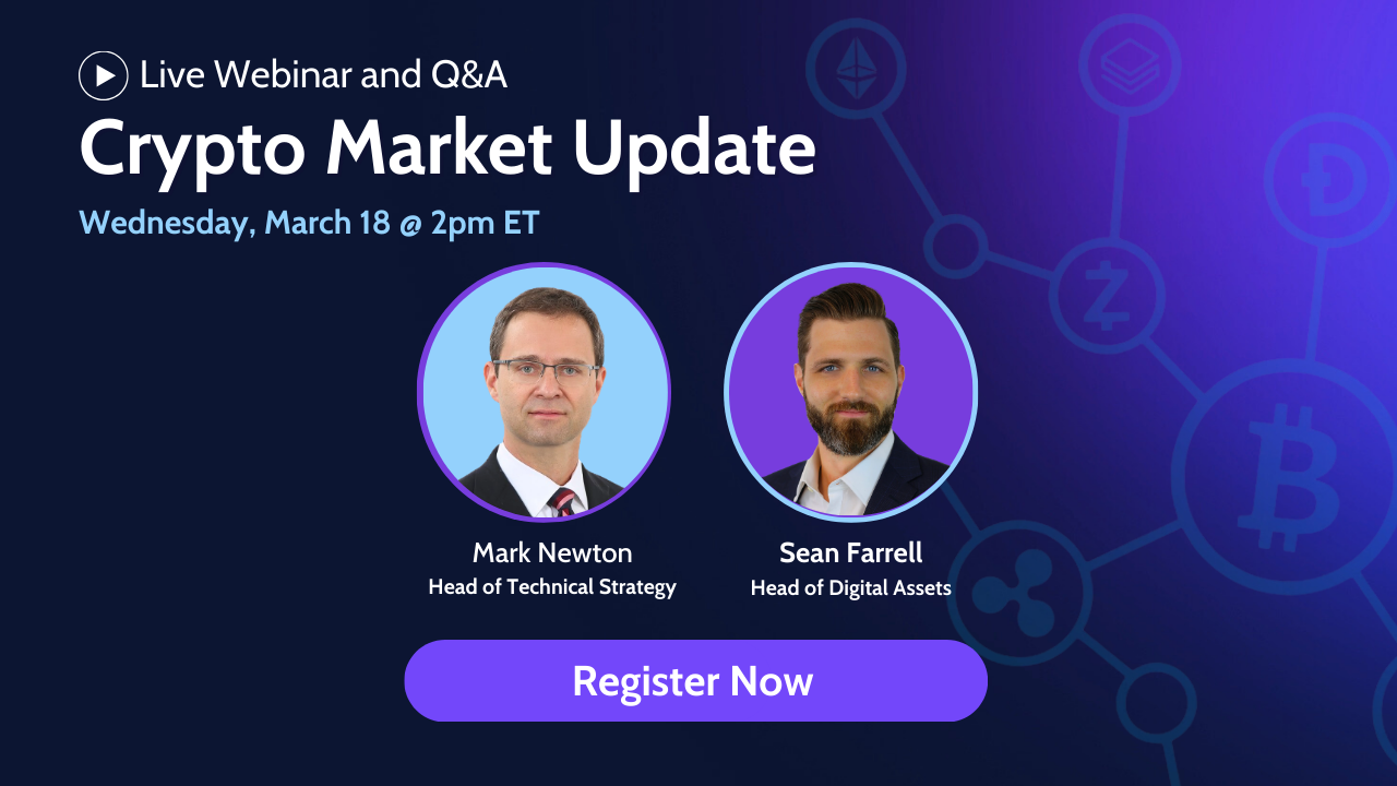 Join us on Wednesday, March 18 at 2pm ET for a comprehensive crypto webinar with Mark Newton (Fundstrat Head of Technical Strategy) and Sean Farrell (Fundstrat Head of Digital Assets Strategy), blending technical and fundamental insights across major digital assets. We’ll break down key price levels, on-chain trends, and upcoming catalysts shaping the next phase of the market, offering clear, data-driven insight into where the sector may be headed next and where new opportunities may emerge. Can’t make it? We’ve got you covered. As always, a replay will be available to clients shortly after the live event concludes.